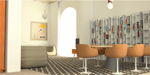 Gestalterische CAD-Bearbeitung eines Innenraums zur Entwicklung eines Gesamtkonzepts. Im Rahmen der Arbeit werden Zielgruppe und Nutzung definiert sowie ein Moodboard und ein Einrichtungskonzept erstellt. Das Projekt umfasst außerdem Grundriss-, Ansichts- und Detailvisualisierungen in Form von Renderings, die eigene und bestehende Gestaltungselemente kombinieren.